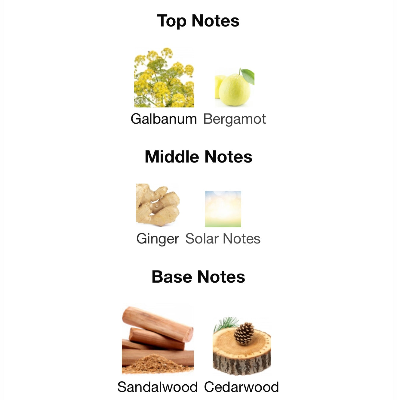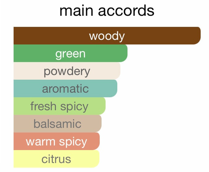 Az alapjegyeket a krémes szantálfa és a tiszta cédrusfa stabilizálják, meleg, mégis légies, hosszú lecsengést biztosítva.