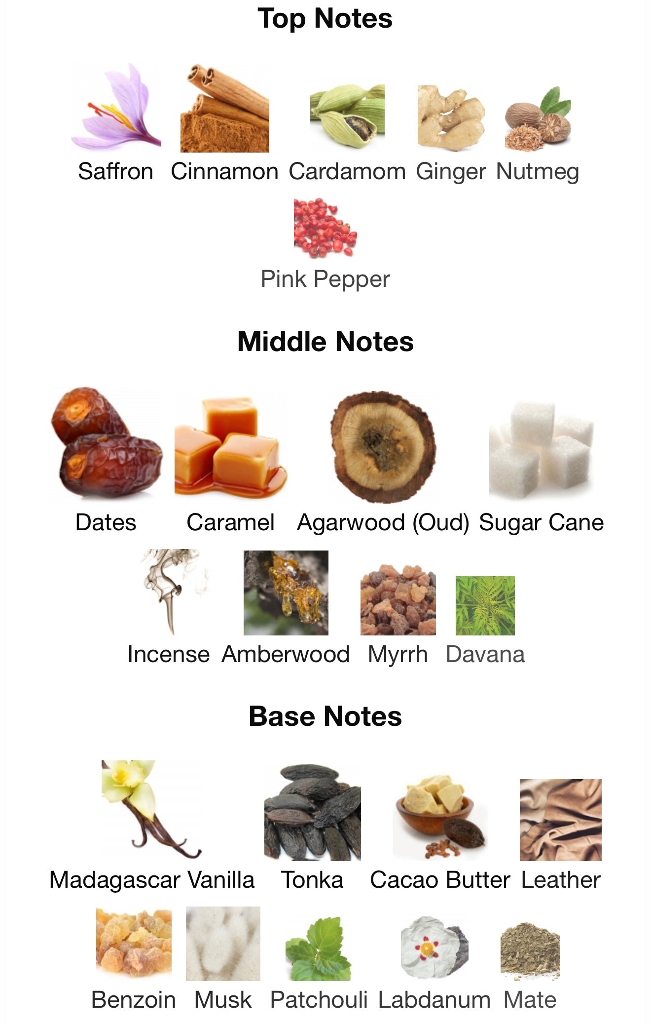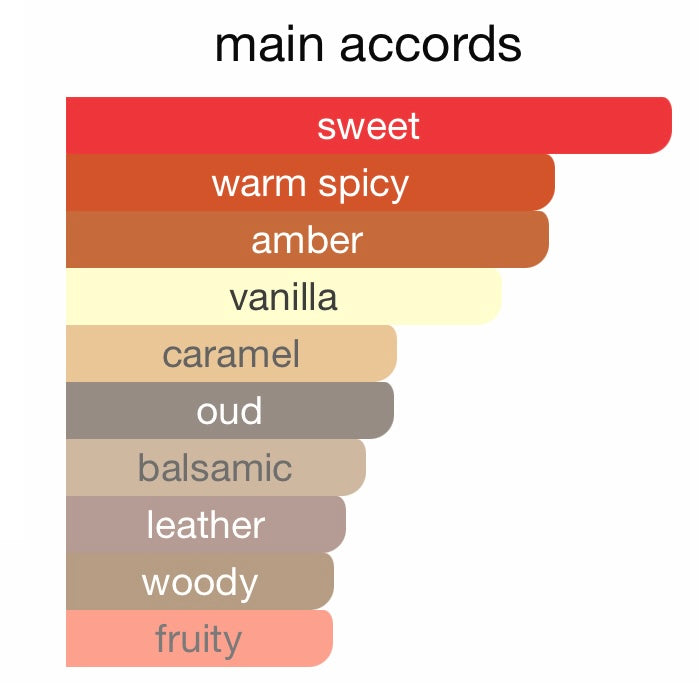 Az illat nyitánya gazdag és markáns: a rózsabors, a sáfrány és a füstölt fás akkordok azonnal magukra vonják a figyelmet. A szívjegyekben az értékes Laosi oud és a török rózsa elegáns kontrasztot alkot – egyszerre állatias és nemes, keleties és modern. Az alapjegyekben a benzoin, a tömjén és a mélyen rezonáló gyantás-fás jegyek adnak hosszú, érzéki lecsengést a kompozíciónak.